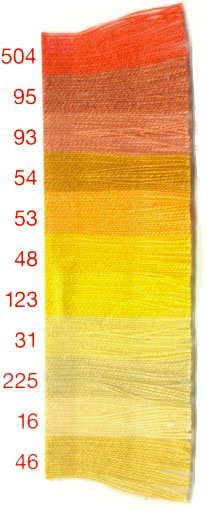 Cantata Home > Accessories > Danish Flower Thread Colors > Yellow-Orange Shades |